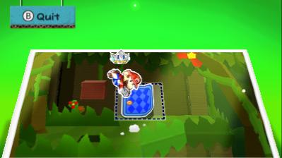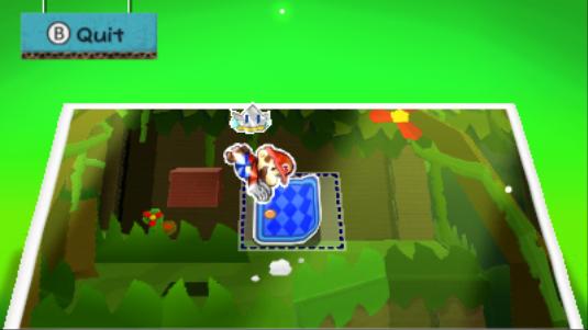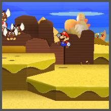 phase d'exploration/plate-forme où Mario peut sauter, décoller des stickers, donner
